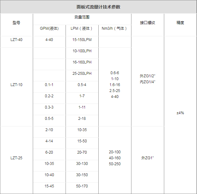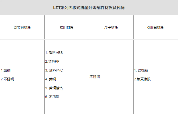 注: ①LZT有機(jī)玻璃轉(zhuǎn)子流量計耐溫<70℃,耐壓0.4Mpa。