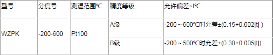分度號(hào)Pt100:A級(jí) R0=100±0.06Ω