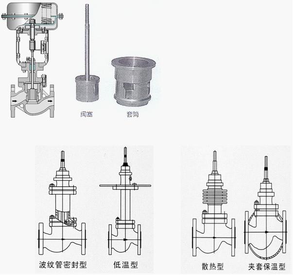 有標(biāo)準(zhǔn)型、調(diào)節(jié)切斷型、波紋管密封型、夾套保溫型等品種。產(chǎn)品壓力等級有PN1.6 4.0 6.4MPa;公稱通徑DN20~300mm;適用流體溫度有-60~+450℃;按溫度高低配用不同閥蓋可分常溫型、高溫型和低溫型。