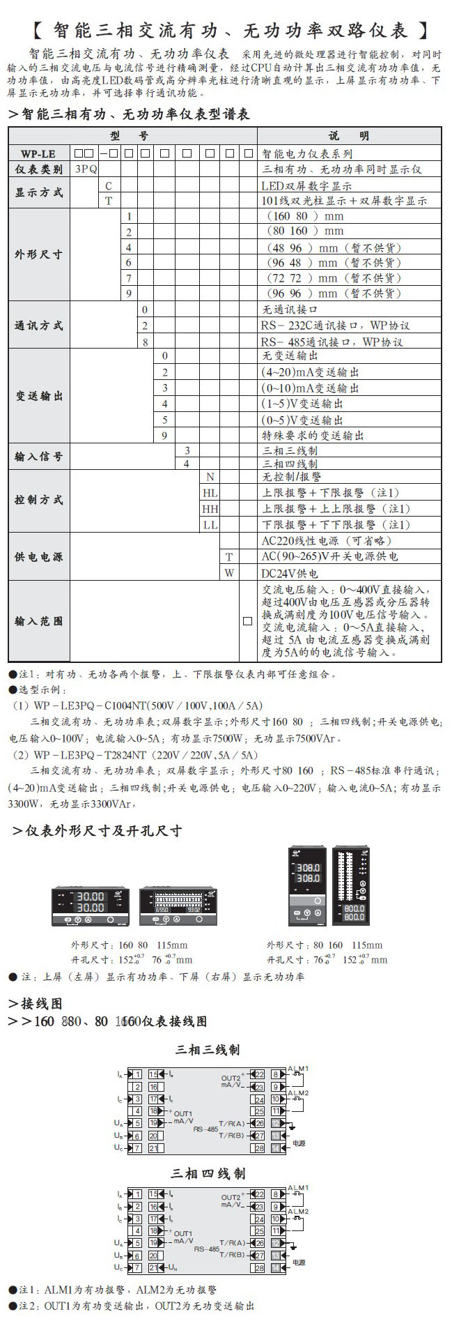 智能三相交流有功、無(wú)功功率雙路儀表